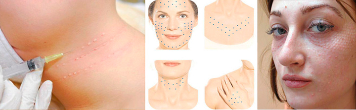 С целью получения желаемого результата, препарат нужно вводить в выделенную область дермы. Это средний слой кожи, в котором располагаются лимфатические и кровеносные сосуды, питательные вещества и соединительные нити коллагеновых волокон. В процессе проведения биоревитализации или мезотерапии специалисты работают с невысокими дозировками, например, менее 1-го мл. Стоит учесть, что плотность самой дермы довольно высокая, поэтому, она пытается вытолкнуть вещество, которое в нее попадает. Данный эффект проявляется посредством образования на поверхности кожного покрова маленького бугорка.