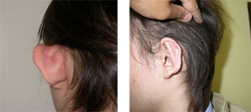 - Реконструктивная пластика. Целое или выборочное восстановление потерянной раковины ушной (материалом при этаком типе отопластики выступает трансплантат из ребра клиента);