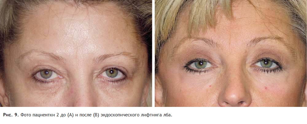 В случае, когда при лифтинге бровей подтягивается еще и кожа лба-надрезы делаются в волосистой области головы, изумительно скрывающей рубцы, оставшиеся после вмешательства хирургов. Также, в такой ситуации, на лбу пациента разглаживаются имеющиеся морщинки.
