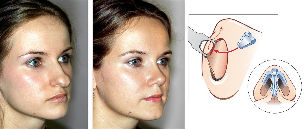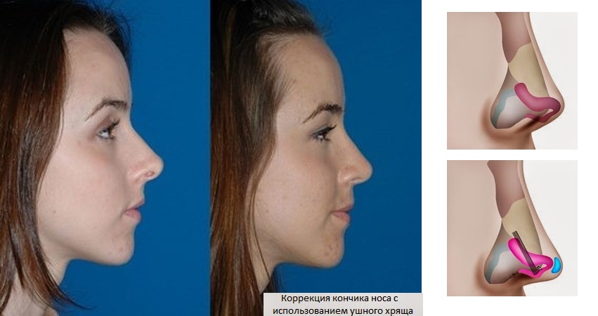 При проведении операции действия врача связаны с манипуляцией с мягкими тканями и хрящами. Какая из этих тканей подвергнется большим изменениям а какая меньшим, зависит от желаемого результата. Надо сказать, что не все так просто, как кажется на первый взгляд. Так, иссечение хрящевой ткани больше положенного испортит не только сам кончик носика, но и весь нос в целом. В том случае, когда требуется изменение размеров кончика носа в сторону уменьшения, прибегают к изменению формы хрящевых куполов.