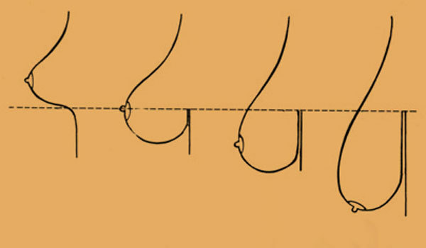 Опущение молочных желез по причинам появления прямо противоположно асимметричной и тубулярной груди, несмотря на внешнее сходство признаков.